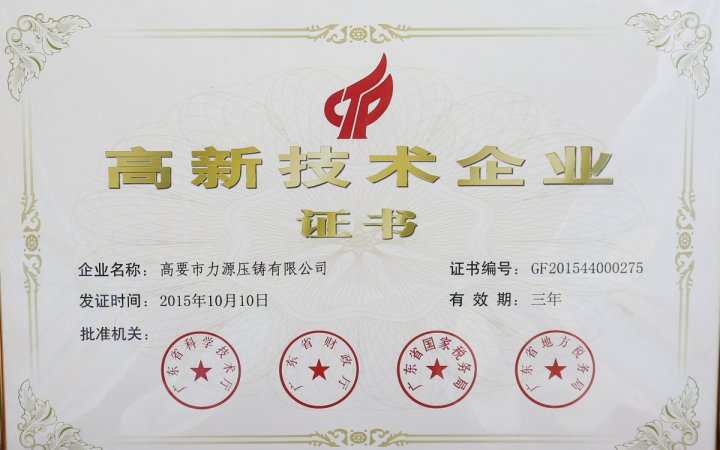 2004年10月,高要力源壓鑄有限公司成立